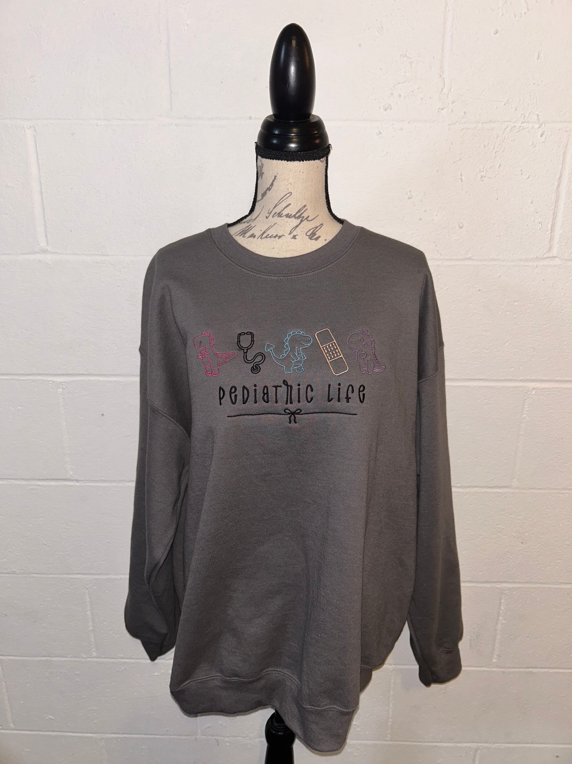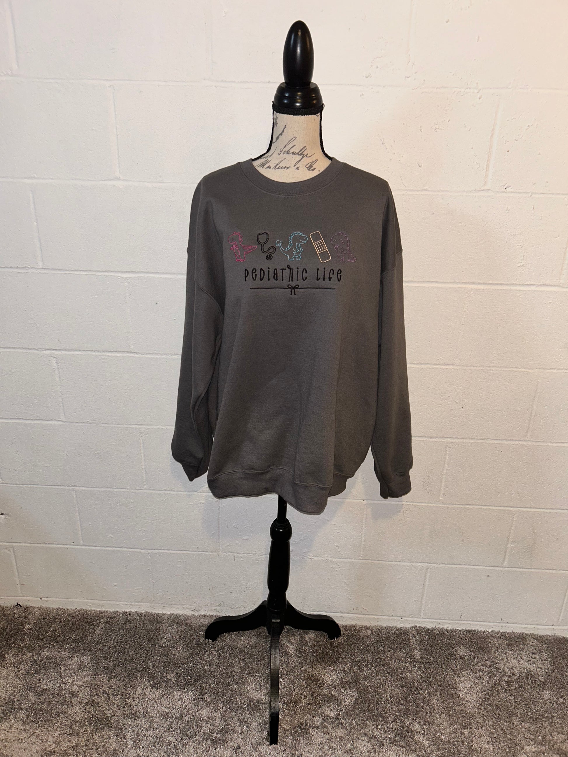 Celebrate the caring spirit of pediatric nurses/Doctor's with the Pediatric Life Sweatshirt. This cozy and playful sweatshirt features bright, cheerful designs that honor those who bring comfort and joy to little patients. Soft and warm, it’s perfect for long shifts or casual days, adding a fun touch to any pediatric nurse’s/doctor's wardrobe.