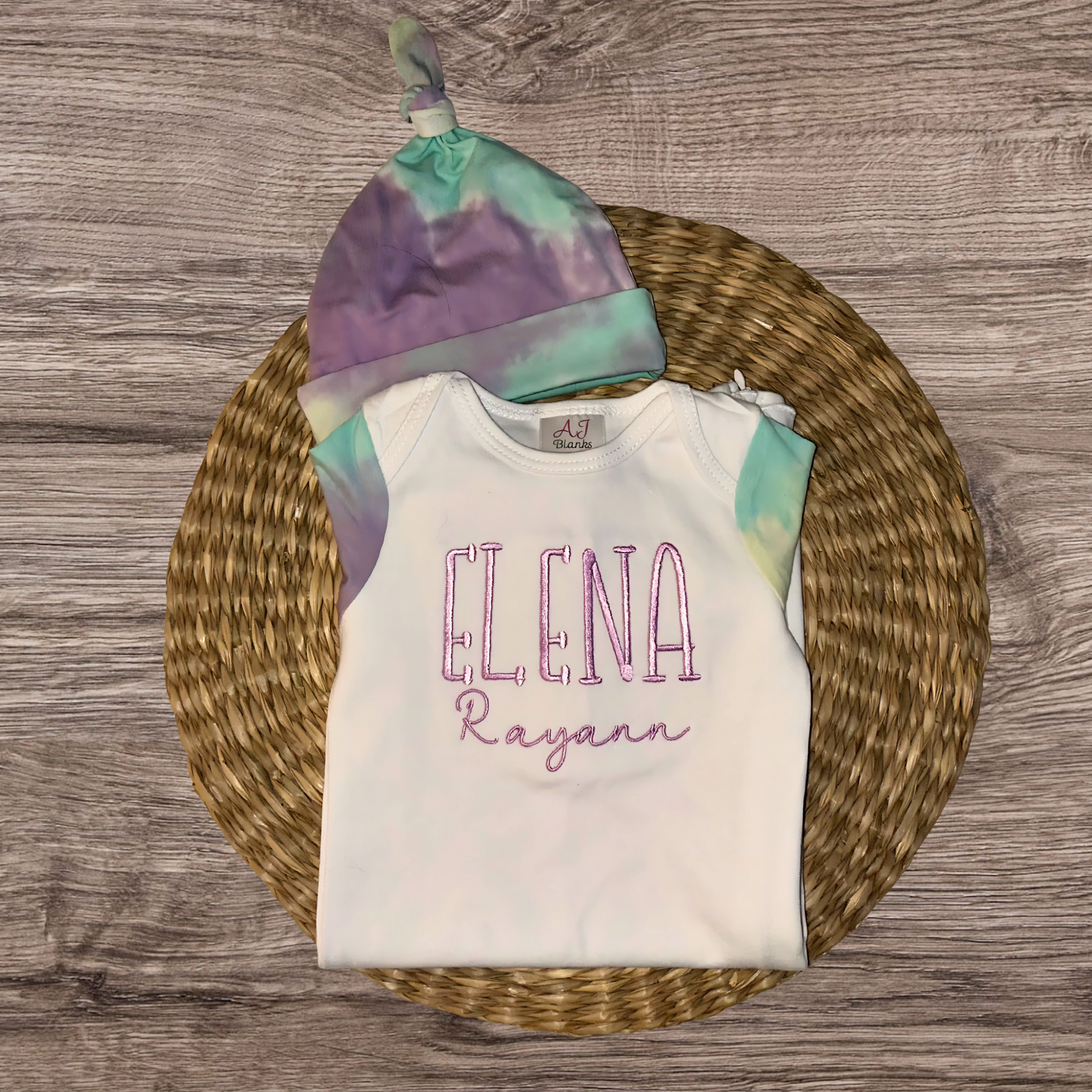 please add initial & baby’s name if you would like both plus thread color you would like in the text box
