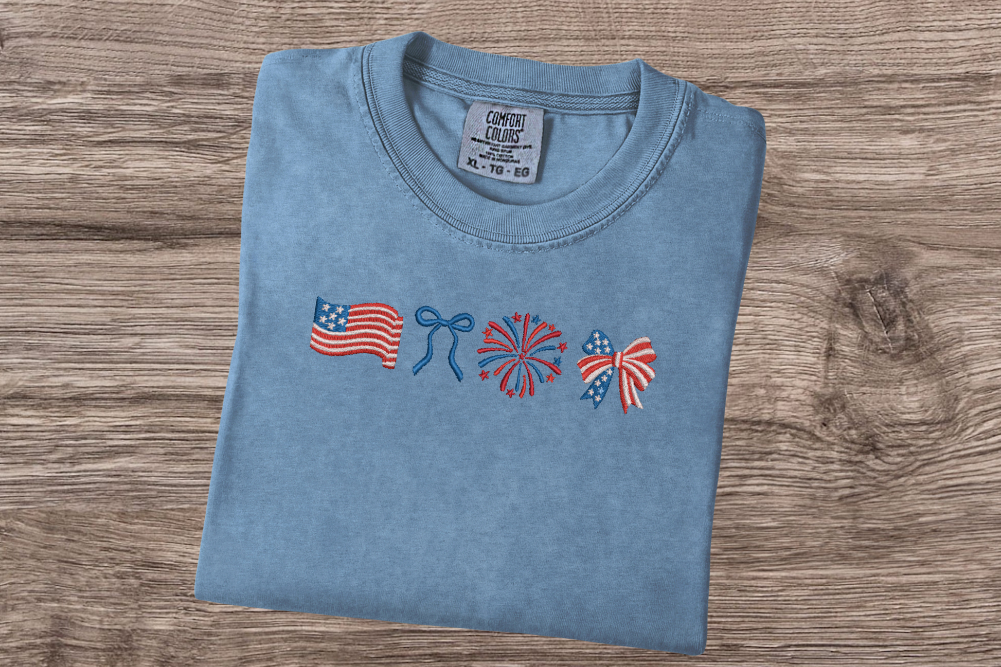 Showcase your patriotic spirit with our American Coquette Bow comfort color t-shirt. Made with soft, high-quality fabric that feels wonderful against your skin, this stylish tee features a charming coquette bow design with American-inspired elements. Perfect for 4th of July celebrations or anytime you want to express your national pride with a feminine touch. The comfort color material ensures lasting vibrancy through multiple washes.