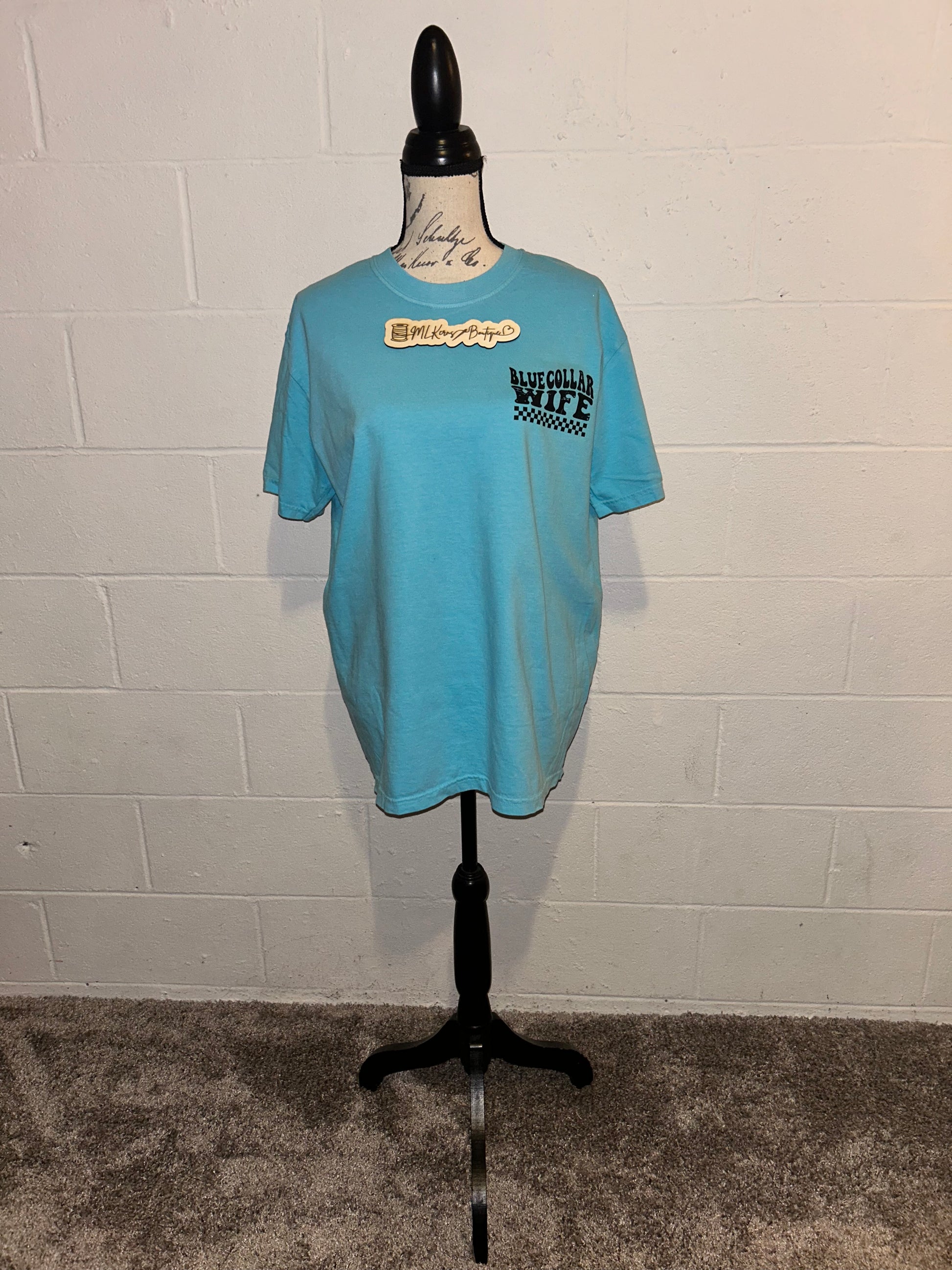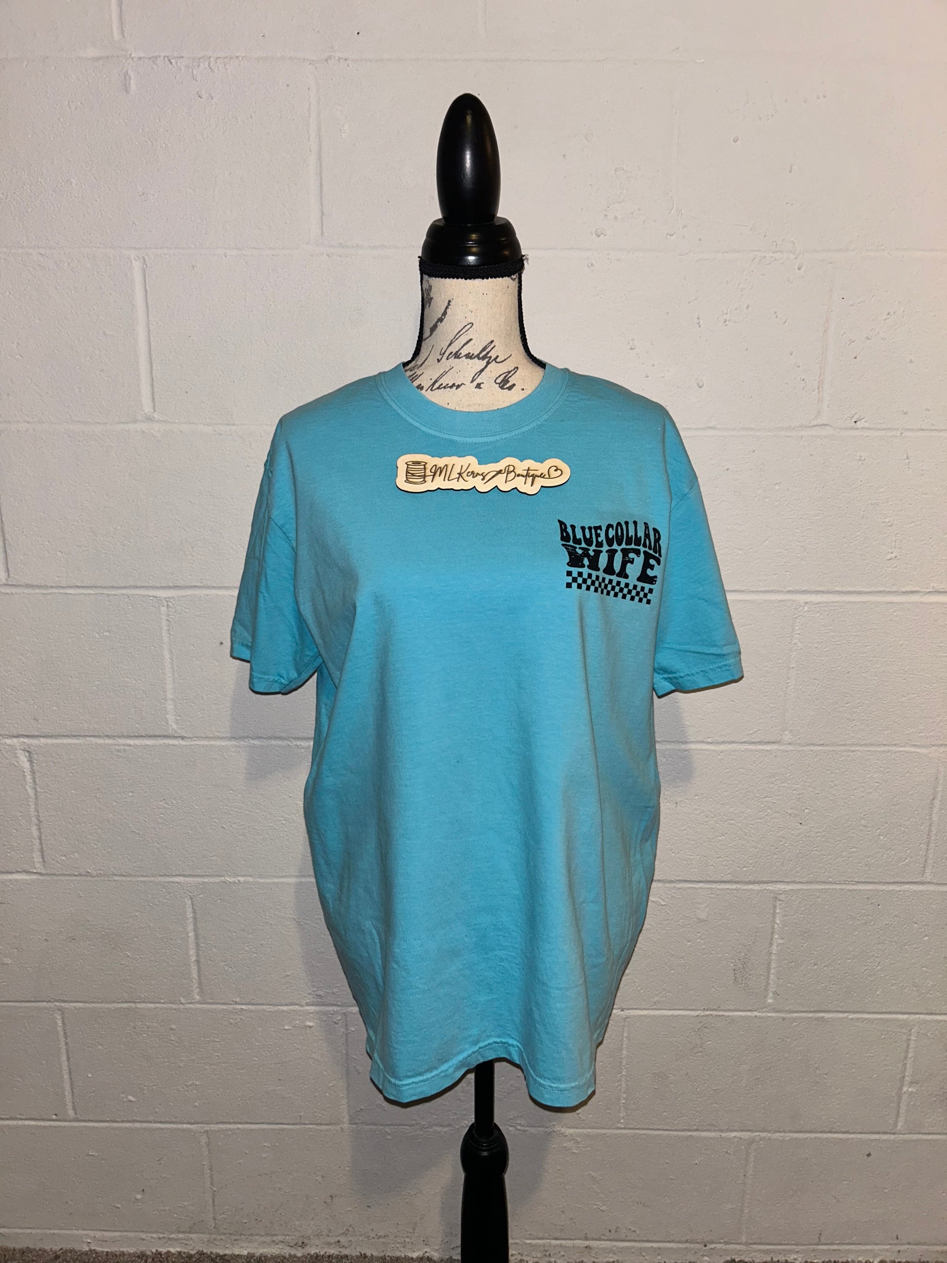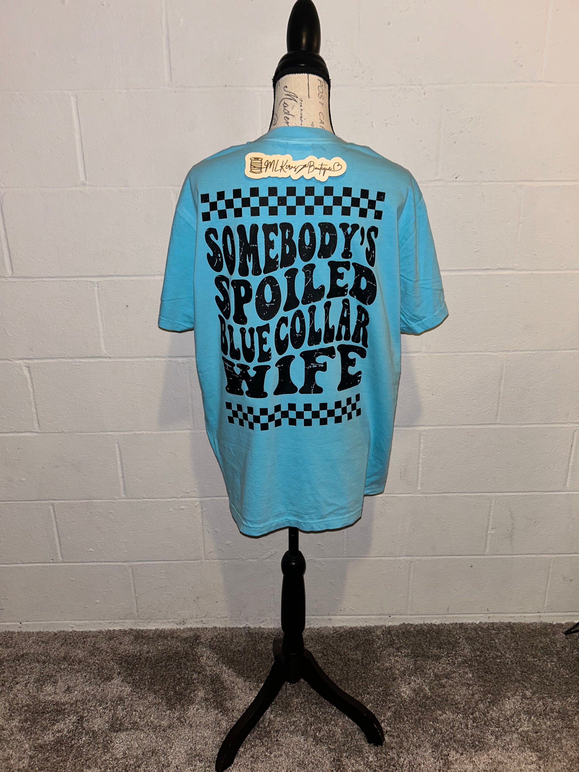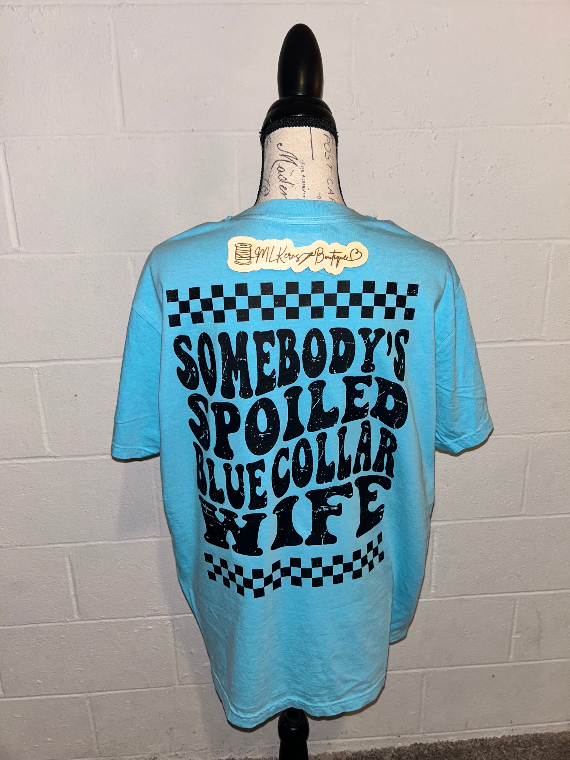 "Introducing the Somebody's Spoiled Blue Collar Wife T-Shirt, made with Comfort Colors for ultimate comfort. Show off your status with this stylish and comfortable shirt. Perfect for everyday wear or as a gift for your favorite blue collar spouse."