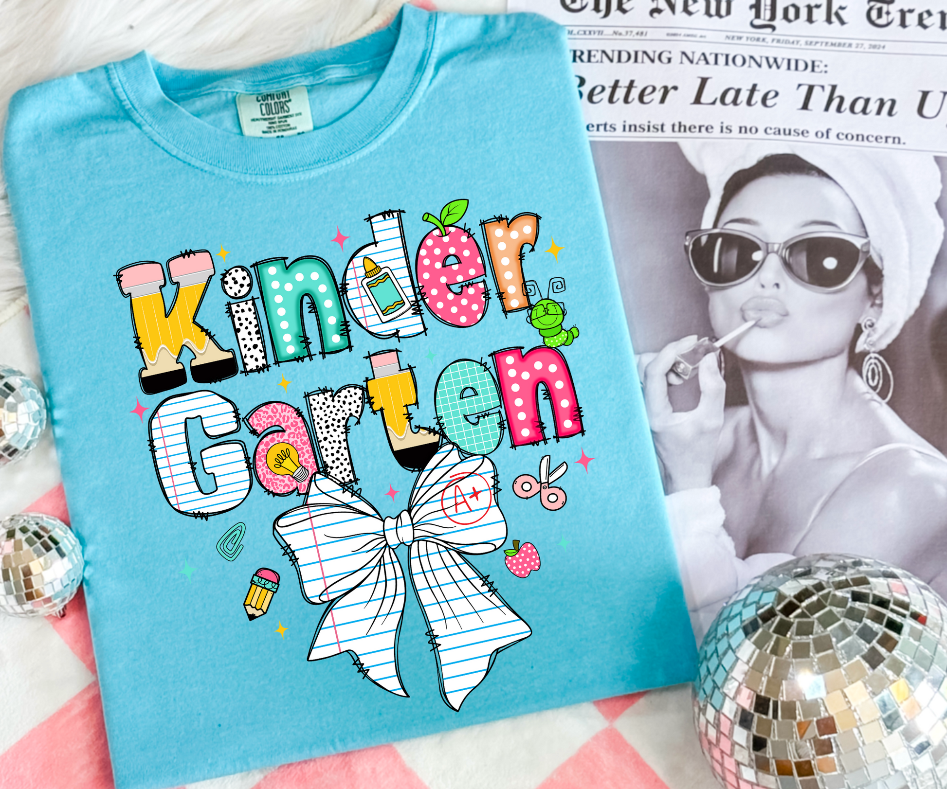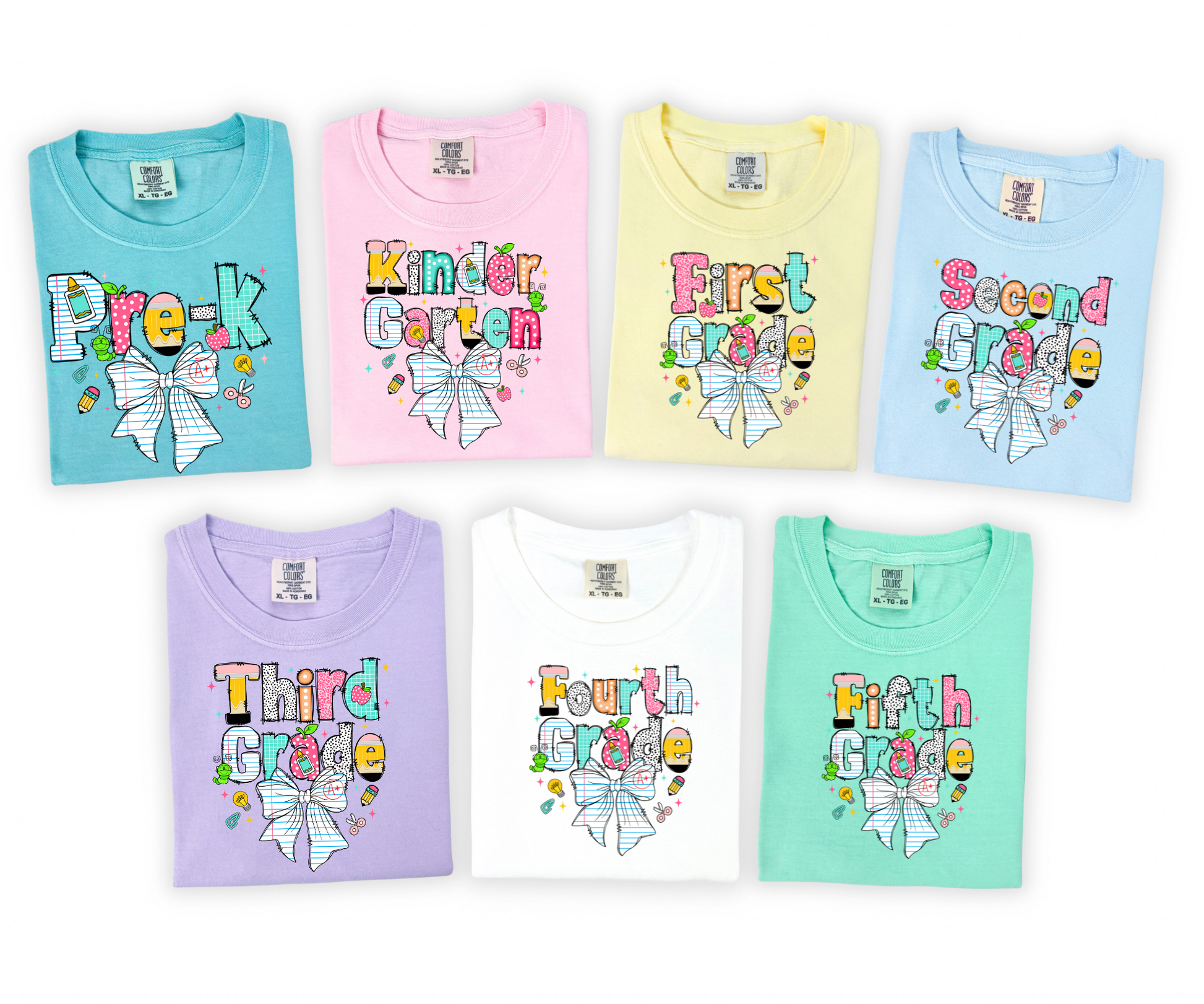This playful t-shirt features the grade number creatively spelled out using vibrant school supplies, making it a fun and unique way for students to show their school spirit. Comfortable and colorful, it’s perfect for back-to-school days or casual wear that celebrates learning with a cheerful twist.