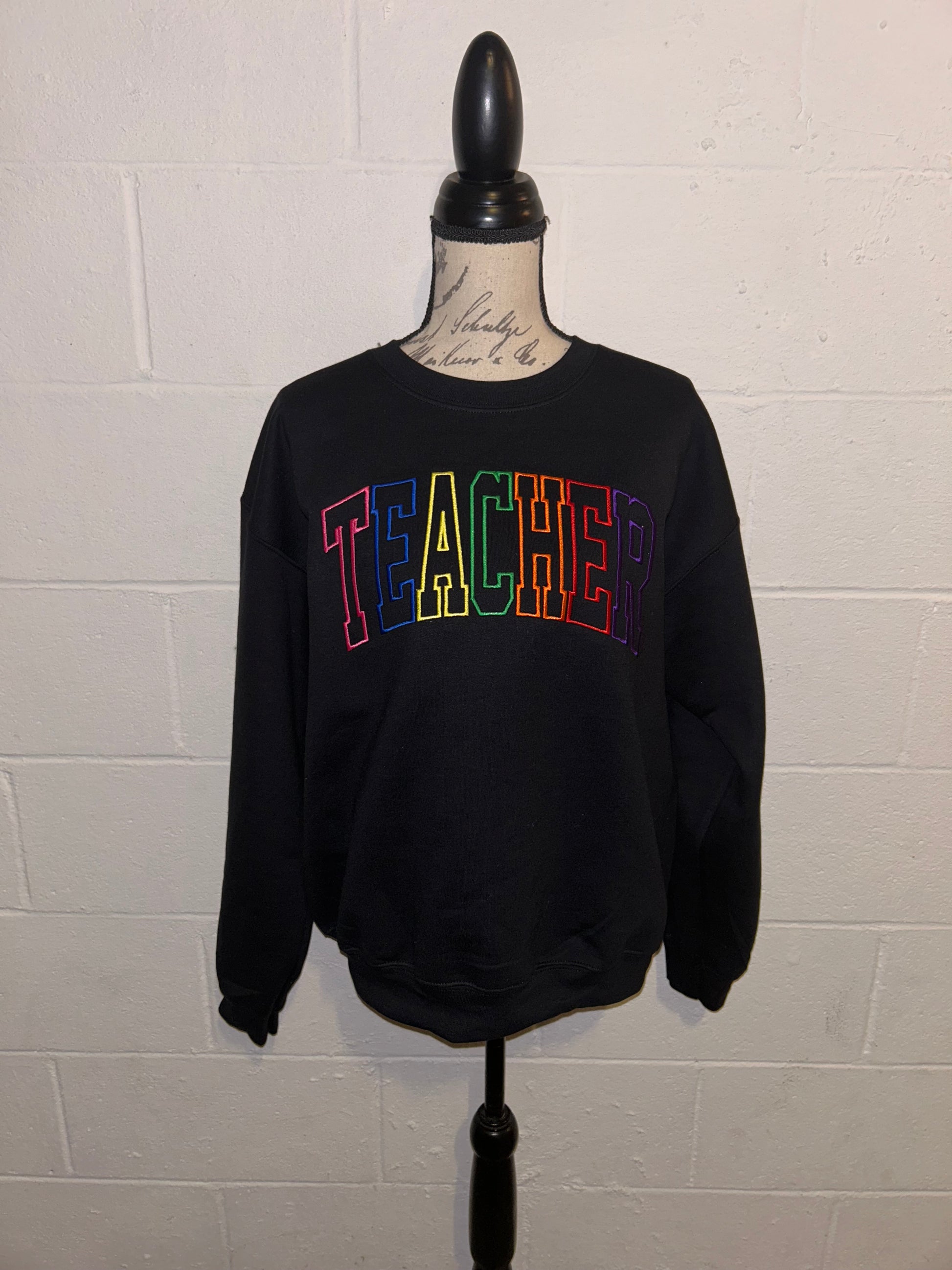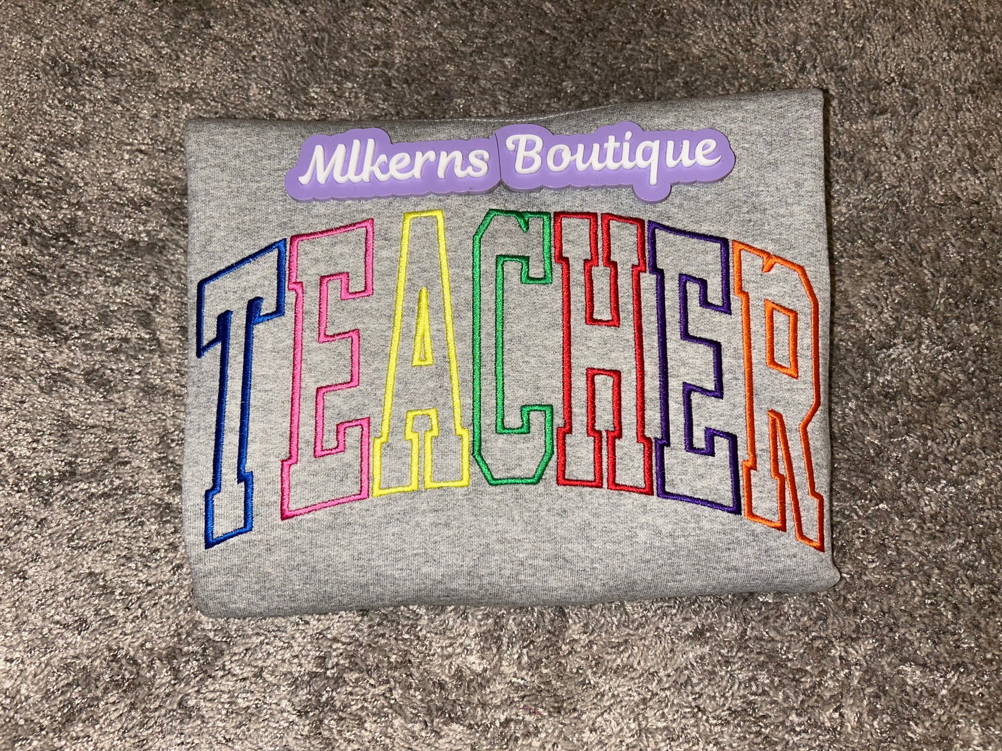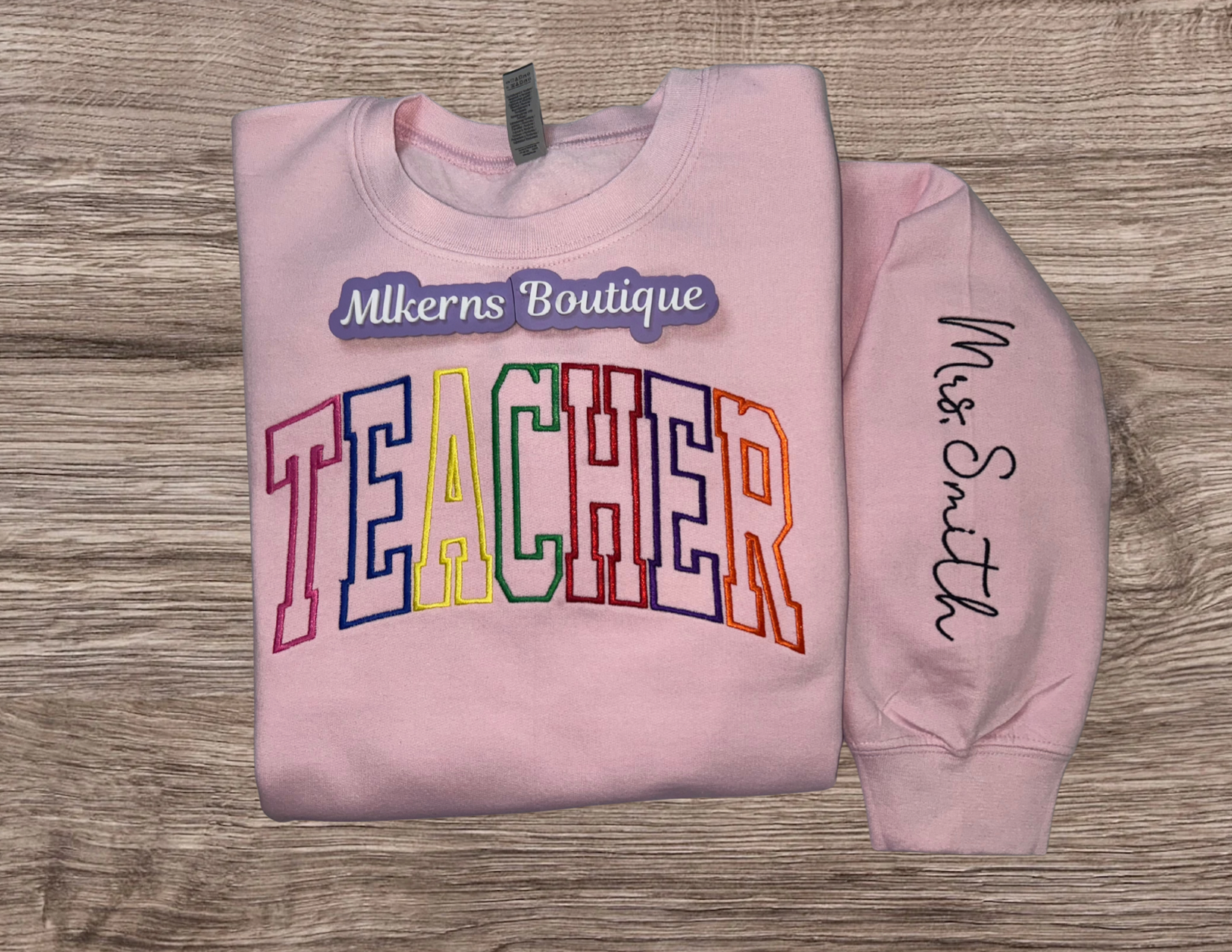 This is a Gilden 50-50 sweatshirt if you would like all letters to be same color ornothing on the sleeve, please let know in the text box