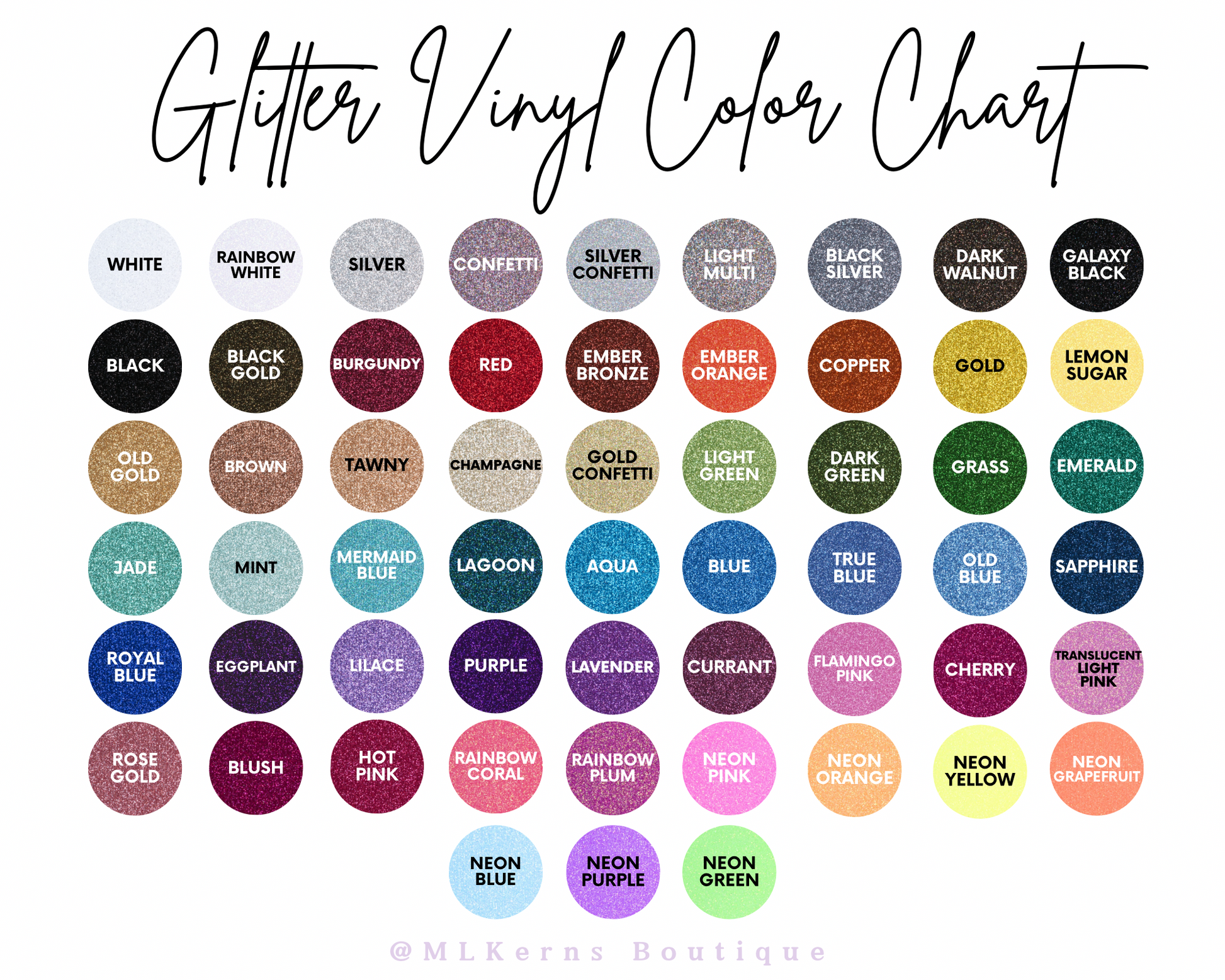 please add sweatshirt color choice, thread color choice, & glitter vinyl choice to text box